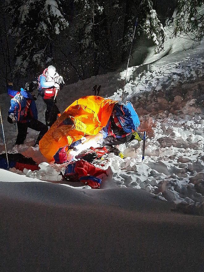 Reichenhaller Bergwacht übt bei schlechtem Wetter und Dunkelheit die Rettung und Versorgung von Verschütteten